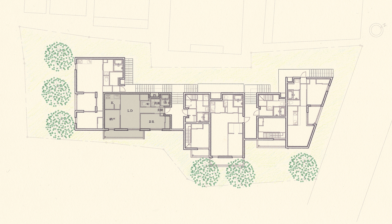 ここではコミュニケーションと個人の空間を同時に確保しながらほどよい距離感を生み出します。